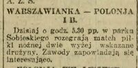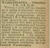 1921-06-22 Warszawianka - Polonia II Warszawa 1:0