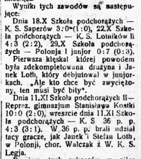 | Polonia Warszawa juniorzy | 7:0 (?) | Szkoła Podchorążych | ||||||||||||||||||||||||||