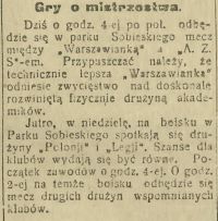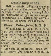 | poprzedni mecz w rozgrywkach: 1923-04-07 Warszawianka - Polonia Warszawa 1:1 |