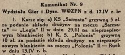 - Polonia została ukarana grzywną 20 złotych za podanie składu na nieprzepisowym blankiecie.