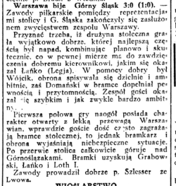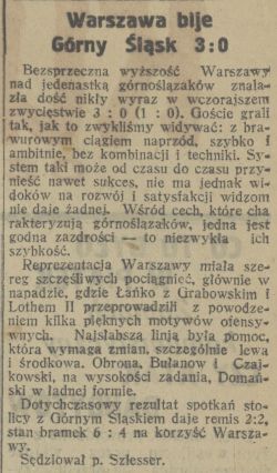 | widzów: 2500 rzuty rożne: Warszawa: 6 Górny Śląsk: 4 | ||||||||||||||||||||||||||||