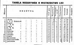 | sędzia: I połowa Franciszek Krukowski (Warszawa) II połowa Alfons Raettig (Łódź) | ||||||||||||||||||||||||||||