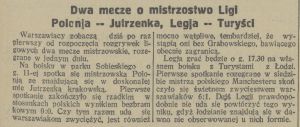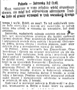 - W zastępstwie nieprzybyłego wyznaczonego na mecz sędziego, sędziował za zgodą kapitanów Krukowski z Warszawy. W drugiej połowie spóźniony na podciąg sędzia przyjechał samochodem i prowadził zawody