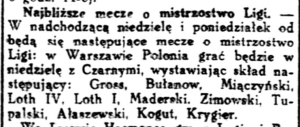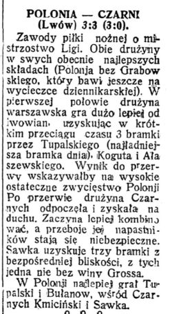 | Polonia Warszawa | 3:3 (3:0) | Czarni Lwów | ||||||||||||||||||||||||||
