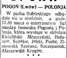 | Polonia Warszawa | 3:2 (1:2) | Pogoń Lwów | ||||||||||||||||||||||||||