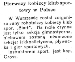 Instruktor w pierwszym kobiecym klubie sportowym ,,Start"
