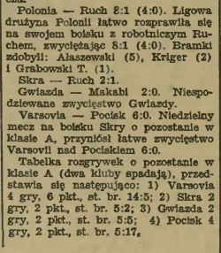 | Polonia Warszawa | 8:1 (4:0) | Ruch Warszawa | |||||||||||
