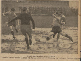 - Mecz rozegrano w bardzo złych warunkach - praktycznie całe boisko pokryte było kałużami.