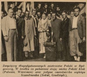 "W Bydgoszczy odbył się w niedzielę długodystansowy wyścig pływacki o mistrzostwo Polski, trasa wynosiła 5000 m. Wyścig odbył się na stojącej wodzie kanału bydgoskiego. Na starcie stanęło 12 pływaków z Warszawy, Krakowa, Wilna i Bydgoszczy." (Gazeta Robotnicza 1937, nr 227)