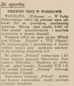 - pierwszy powojenny mecz rozegrany w Warszawie