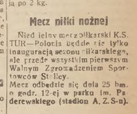 I wówczas pierwszy kronikarz sportowy Wyzwolonej Warszawy, pracujący jako zecer w „Życiu Warszawy” nieżyjący już Staś Kotkowski zapowiedział otwarcie sezonu piłkarskiego w stolicy Polski Ludowej na niedzielę 25 marca 1945 r, o godz. 12.00 w parku Paderewskiego, z udziałem MKS Polonia i TUR Okęcie.