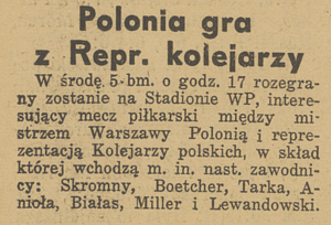 (Przekierowano z 1946-09-05 Polonia Warszawa - reprezentacja Kolejarzy 3:5)