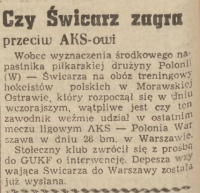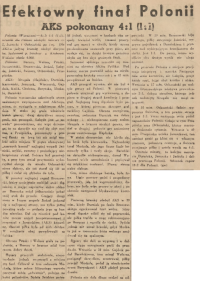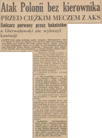 "POLONIA gra w Warszawie z AKS-em. Faworytem jest drużyna warszawska, jednakże nie można powiedzieć, że AKS jest w tym meczu