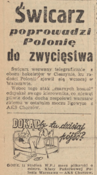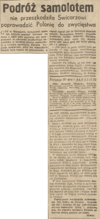 bez szans. Polonia, teoretycznie zagrożona spadkiem, potrzebuje zdobyć tylko jeden punkt, by pozbyć się wszelkich obaw." (Wieczór nr 327 z 27.11.1948 s. 4)