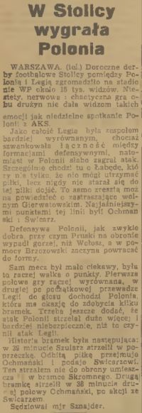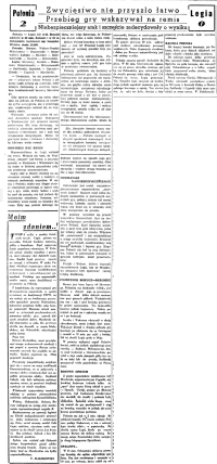 " (...) W Warszawie sprawy układają się nierównie prościej. Polonia ma wybitną przewagę nad Legią, która w powodzi eksperymentów...