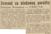 Z papierowego obliczenia dorobku obu zespołów należałoby sądzić, że faworytem czwartkowego meczu będzie CWKS. Jednakże znaczna poprawa formy linii ofensywnej Kolejarza, wykazana w meczach z Unią Chorzów i Włókniarzem Kraków, pozwala przypuszczać, że napad tej drużyny nie będzie gorszy od napadu CWKS i dlatego należy oczekiwać gry emocjonującej, na dobrym poziomie.