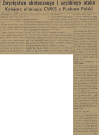 Wysoka stawka, jaką niewątpliwie jest zwycięstwo i tym samym dalszy udział w rozgrywkach o puchar Polski, nie powinna ani na chwilę sprowadzić zawodników obu drużyn na drogę nieszlachetnej lub brutalnej walki. Należy sobie życzyć, aby mecz czwartkowy został rozegrany w atmosferze szlachetnego współzawodnictwa sportowego i pozostawił po sobie jak najlepsze wspomnienie."