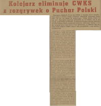 Dziś o godzinie 17 na Stadionie WP odbędzie się mecz piłkarski o Puchar Polski między drużynami warszawskiego Kolejarza i CWKS.