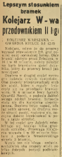 | Kolejarz Warszawa | 3:1 (2:0) | Gwardia Kielce | ||||||||||||||||||||||||||