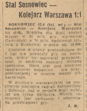 | Stal Sosnowiec | 1:1 (1:0) | Kolejarz Warszawa | ||||||||||||||||||||||||||