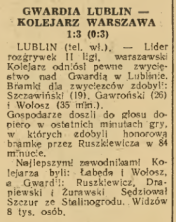 | Gwardia Lublin | 1:3 (0:3) | Kolejarz Warszawa | ||||||||||||||||||||||||||
