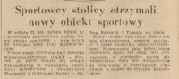 W sobotę 53 bm załoga PPRK t.r 7 przekazała sportowcom stolicy nowy obiekt sportowy — halę krytą ZS Kolejarz przy ulicy Konwiktorskiej.
