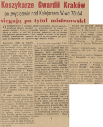 1954-01-31 Kolejarz Warszawa – Gwardia Kraków 64:78