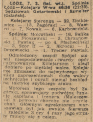 1954-02-07 Spójnia Łódź – Kolejarz Warszawa 46:56