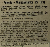 | Polonia Warszawa | 2:2 (1:1) | Warszawianka | ||||||||||||||||||||||||||