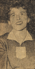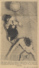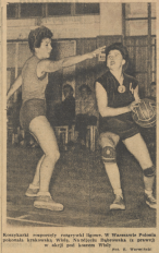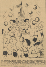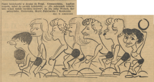 B. Dąbrowska w reprezentacji Warszawy na turnieju o Wielką Nagrodę Miasta Pragi 1955 w karykaturze Edwarda Ałaszewskiego; Przegląd Sportowy nr 134 z 12.12.1955 s. 1