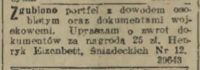 Informacja o śmierci Józefa Eisenbetta, dziedziczenie Henryka Eisenbetta; przypuszczalnie to ten sam H. Eisenbett: