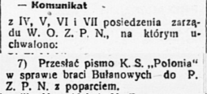"Zarząd WOZPN poparł Polonię w sprawie braci Bułanow na grę"
