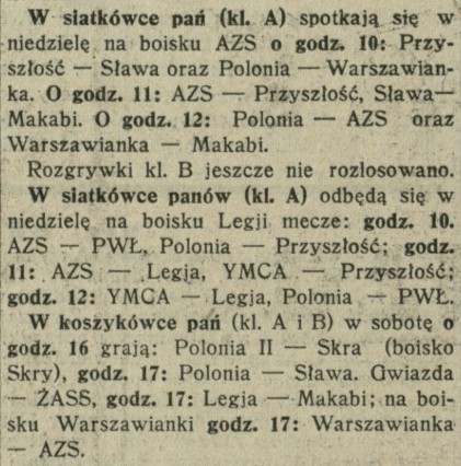 - 1932-04-24 AZS Warszawa (k.) - Polonia Warszawa (k.) 30:11