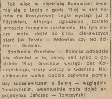 Fragment artykułu "Niedzielna młócka na ringach Warszawy".