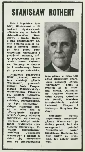 "(...)Rothert nieoględnie marnuje boski talent zaklęty w jego osobie. Poza nogami, niemniej ważnymi dla sportowca są płuca i serce. Czy długo one jednak wytrzymają u niego wobec trybu życia jaki prowadzi - wątpimy. A wielka to szkoda."