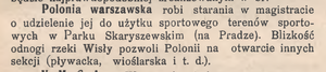 Starania Polonii o udzielenie do użytku terenów sportowych w Parku Skaryszewskim