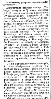 Wiosenny program Polonii Warszawa