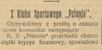 Z Klubu Sportowego Polonia, "Echo Warszawskie nr 2 z 05.01.1924, s.4