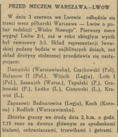 | widzów: 3000 rzuty rożne: Lwów: 5 Warszawa: 5 | ||||||||||||||||||||||||||||