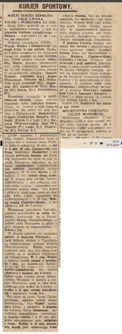 | skład gości = Marian Bednarowicz - (Legia Warszawa) <br> [[Mieczysław Czajkowski]] - '''(Polonia Warszawa)''' <br> [[Jerzy Bułanow II]] - '''(Polonia Warszawa)''' <br> | | skład gości = Marian Bednarowicz - (Legia Warszawa) <br> [[Mieczysław Czajkowski]] - '''(Polonia Warszawa)''' <br> [[Jerzy Bułanow II]] - '''(Polonia Warszawa)''' <br> Aleksander Szenajch - (Warszawianka) <br> [[Stefan Loth I]] - '''(Polonia Warszawa)''' <br> Franciszek Wójcik - Legia Warszawa <br> Stanisław Jung - (Warszawianka)<br> [[Aleksander Tupalski]] - '''(Polonia Warszawa)''' <br> Marian Łańko - (Legia Warszawa) <br> [[Tadeusz Grabowski II]] - '''(Polonia Warszawa)''' <br> Karol Krawuś - (Legia Warszawa) <br> <br> '''rezerwowi:''' <br> Zbigniew Olewski - (Korona Warszawa) <br> Tadeusz Koch - (Korona Warszawa) <br> Ryszard Redlich - (Warszawianka)<br> | ||