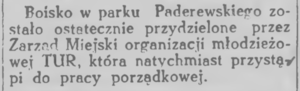 [[Plik:Gazeta ludowa 1945-11-22 nr 19 str. 6 boisko w p.paderewskiego AZS.png|300px|thumb|left|Gazeta | [[Plik:Gazeta ludowa 1945-11-22 nr 19 str. 6 boisko w p.paderewskiego AZS.png|300px|thumb|left|Gazeta Ludowa 1945-11-22 nr 19, str. 6]] [[Plik:ŻW 1945-11-23- nr 324 boisko w parku Paderewskiego przekazane TUR-owi.png|300px|thumb|center|Życie Warszawy 1945-11-23 nr 324]] | ||