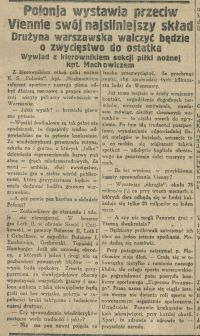"Wywiad z kierownikiem sekcji piłki nożnej Polonii przed meczami z Vienna FC Wiedeń"