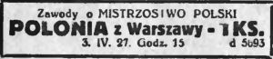 1927-04-03 TKS Toruń - Polonia Warszawa 4:3