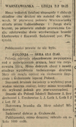 | Skra Warszawa | 1:12 (0:7) | Polonia Warszawa | ||||||||||||||||||||||||||