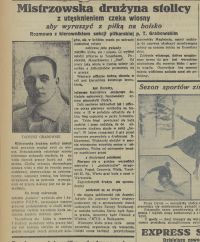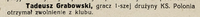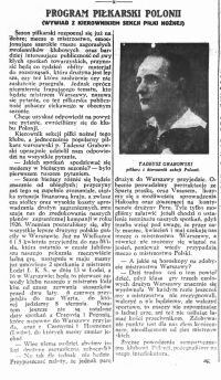 "(...) Dziś inż. Tadeusz Grabowski powrócił znów do piłki nożnej. Oczywiście nie jako zawodnik, ale jako działacz, zawsze całym sercem oddany piłce i sportowi. Inż. Grabowski powołany został do Rady Seniorów reaktywowanego klubu "Polonia" oraz pracuje już od kilku miesięcy jako przewodniczący Sekcji Młodzieżowej PZPN. (...)"