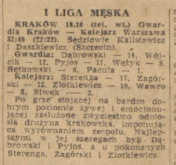 1953-10-18 Gwardia Kraków – Kolejarz Warszawa 53:49