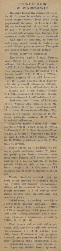 Turniej Gier Sportowych Ośrodka W. F. - 1929