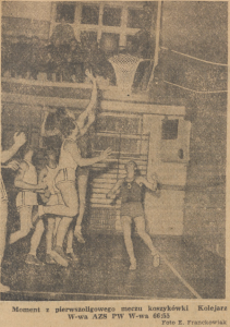 mecz 1954-01-16 Kolejarz Warszawa – AZS Warszawa 66:55, Przegląd Sportowy nr 5/1953